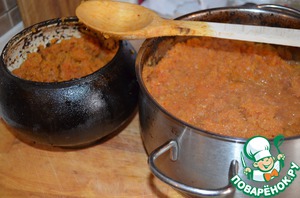 Икра, готовая в духовке, теряет влагу. Готовая икра должна стать золотой, и овощи должны быть готовы. Если вы уменьшите температуру в духовке, то можно икру оставить томиться на всю ночь, это очень удобно. -