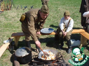 Мы с мужем увлекаемся военно-историческими реконструкциями.. И поэтому часто приходится жить по несколько дней в палатках на природе.. И также часто мы готовим еду на природе. Вот одно блюдо из нашего походного меню..)