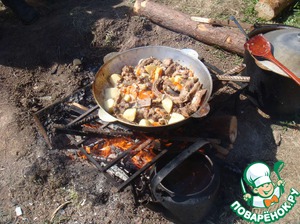 Рецепт «Тушеный картофель с ребрышками на костре»: