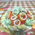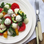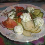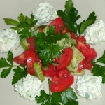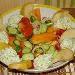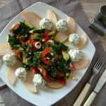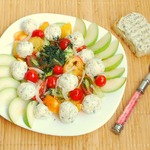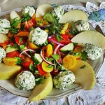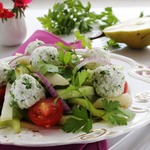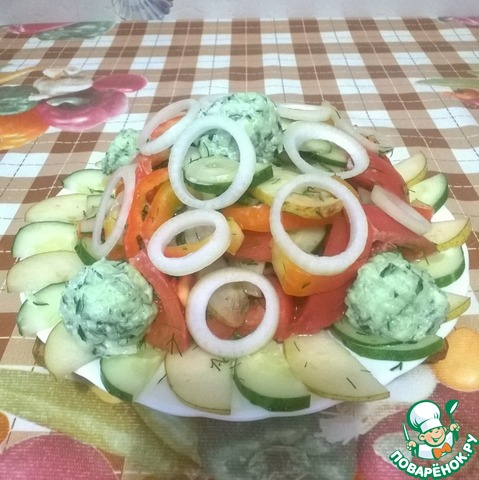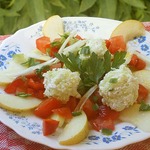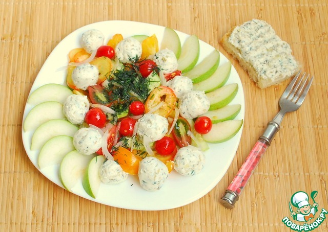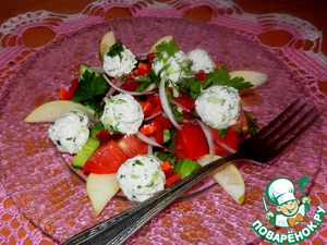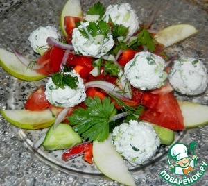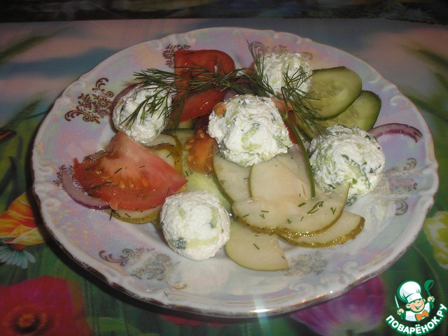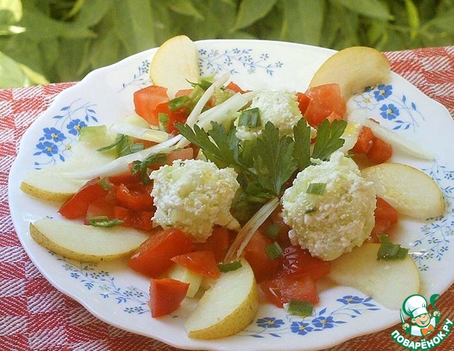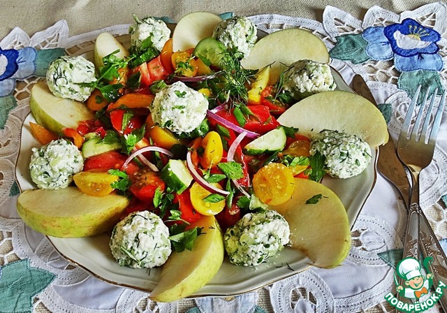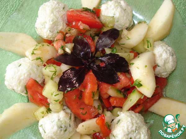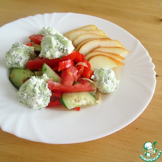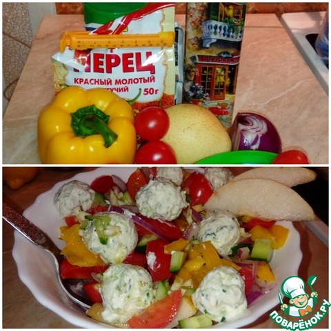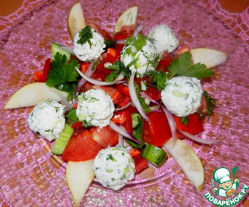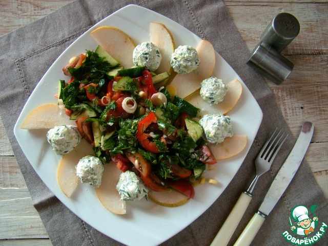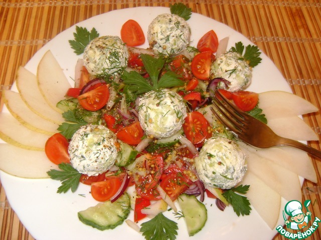 Рецепт «Овощной салат с творожно-огуречными шариками и грушей»: