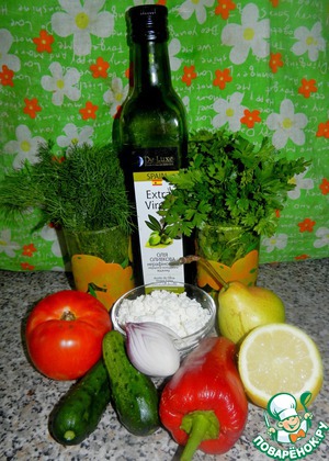 Ингредиенты для «Овощной салат с творожно-огуречными шариками и грушей»: