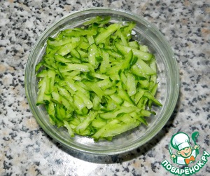Один огурец натереть на крупной тёрке, посолить и оставить на 5 минут.