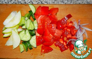 Остальные овощи и грушу нарезать. Я делала на 1/2 порции, поэтому овощи у меня ушли не все.