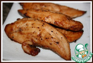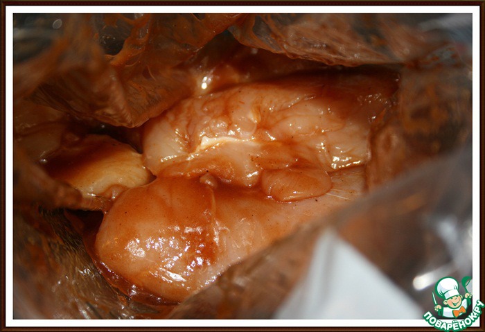 1. Соединить 2 ст. л. соуса барбекю и 1 ст. л. оливково масла, соль и чёрный перец, хорошо перемешать и добавить к ним курочку.