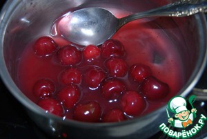 Вводим растворённый крахмал в черешню, завариваем соус (кисель).