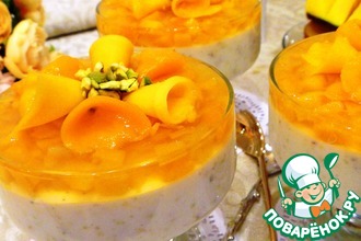 Перед подачей персики выложить поверх сливочного слоя и сразу же подавать!