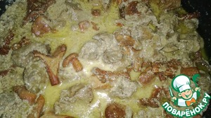 Вкусное и легкое в приготовлении блюдо. Пробовала в московском ресторане, что-то подобное. Воссоздать не получилось, но я тогда уже поняла, что лисички прекрасно сочетаются с куриной печенью. То блюдо, которое получилось у меня, очень понравилось моему мужу надеюсь, что понравится и вам)))