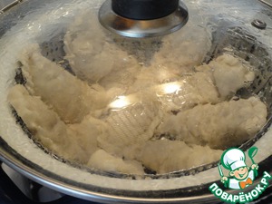 Вот и наши готовые варенички. Под крышкой они такие надутые.
