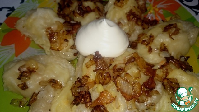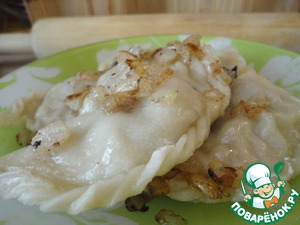 Аккуратно вынимаем вареники, пересыпая их луковой зажаркой.