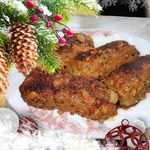 Формируем небольшие тонкие колбаски из фарша, примерно таким образом, как на фото: я скатываю в руках небольшой шарик, расплющиваю его и катаю по досточке слева-направо. Колбаски получаются плотными и одинаковой толщины. Также кофту делают в виде маленьких шариков.