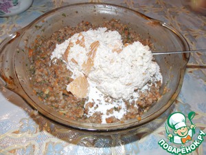 Добавить хлеб к нашему фаршу из гречи и овощей.