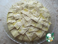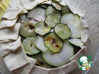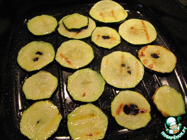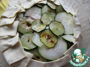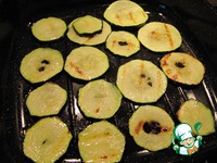 Затем сверху выкладываем обжаренный кабачок. Слегка присолим его. |