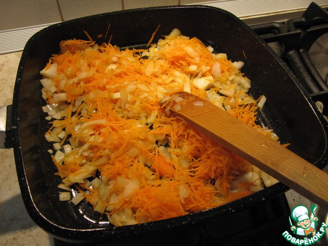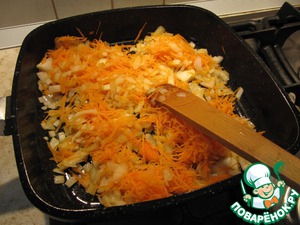 Морковь, лук измельчить и слегка обжарить. |