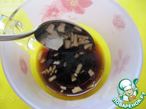 Для приготовления соуса необходимо смешать мед и терияки, добавить туда чеснок.