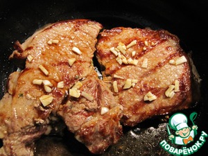 Включить мультиварку на режим "Выпечка" или "Жарка", налить масло для жарки. Крышку не закрывать. Дать маслу нагреться 3-5 минут. Положить туда телятину и обжаривать до золотистой корочки с каждой стороны. Я этот этап сделала на сковородке-гриль (нравится она мне!).