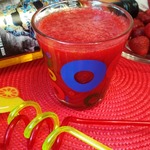 В блендер сложить замороженную клубнику и измельчить ее. Мой блендер не рассчитан на работу со льдом, поэтому я даю клубнике постоять минут пять и чуть-чуть отойти, после этого пробиваю ее в режиме "Турбо".