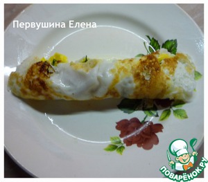 Белок выливаем на раскаленную сковороду с добавлением масла и обжариваем. Выкладываем на блюдо