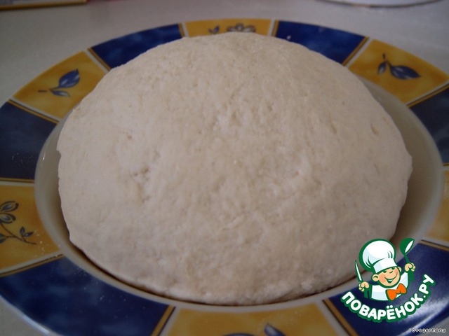 Муку (для начала немного, прим. 1 стакан) перемешаем с разрыхлителем и всыпаем в массу с молоком. Перемешать и добавить муки столько, чтобы получилось мягкое тесто, хорошо вымесим, накроем чашкой и забудем про него. -
