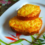 Намазываем нашу "замечательную" массу на ломтики батона.
