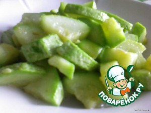 Кабачки помыть, нарезать кубиками и слегка обжарить.