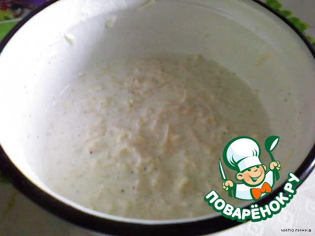 Сливки смешать с мукой, сыром, солью, перцем и тщательно перемешать, чтобы небыло мучных комков.