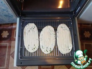 Ставим выпекать в духовку на решетке, на самую большую температуру, у меня в духовке встроенный гриль, поэтому я включала только его на максимум и решетку прямо под гриль, печется минут 5 с каждой стороны (то есть нужно перевернуть 1 раз)
