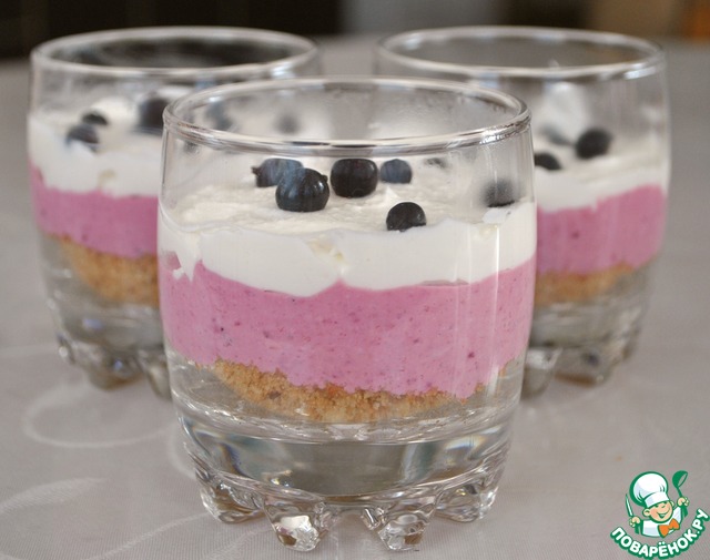 Оставить для застывания в холоде минимум на 20 минут (творог быстро "схватывается"). Украсить ягодами.