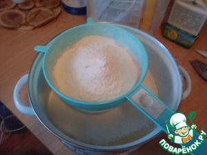3. Добавить кефир, сахар, соль, яйца, муку. Муки может потребоваться больше, в зависимости от консистенции кефира. Я использовала 3,2%. Муку я добавляла, просеивая через сито, так она более пушистая и тесто потом лучше поднимается.