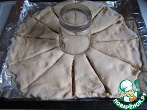 2. Разрезаем вокруг стакана тесто на лепестки. У меня получилось 12 лепестков. -