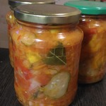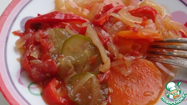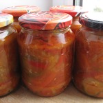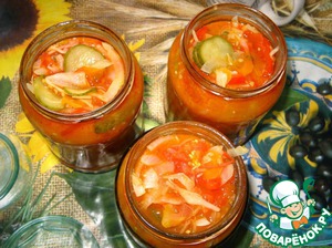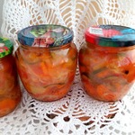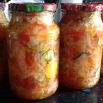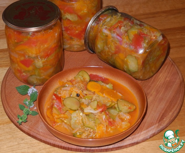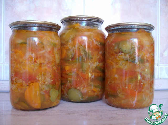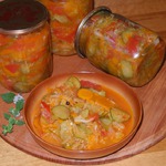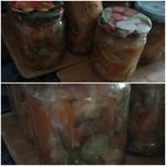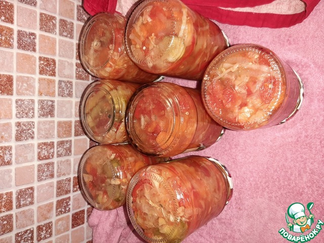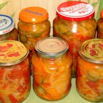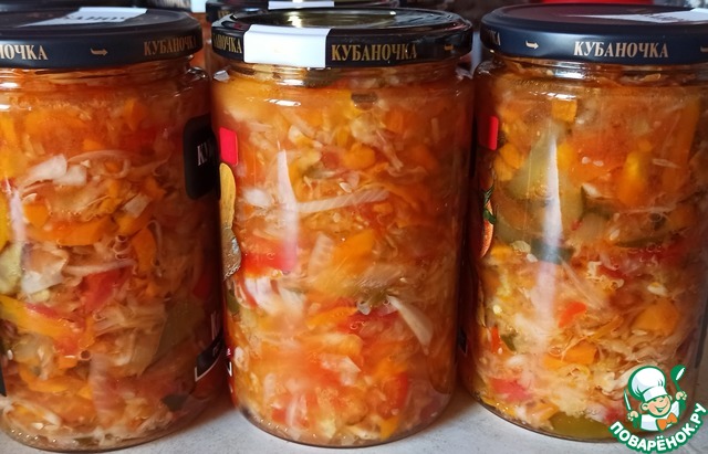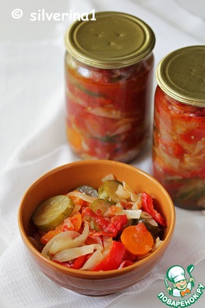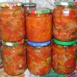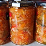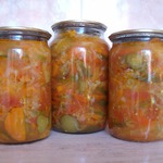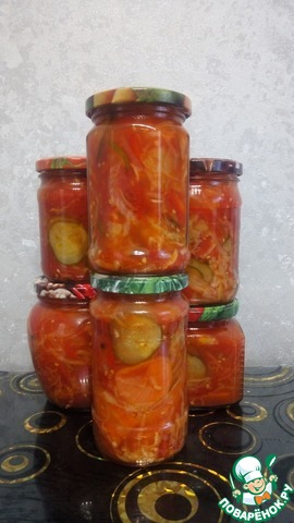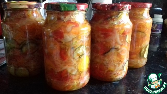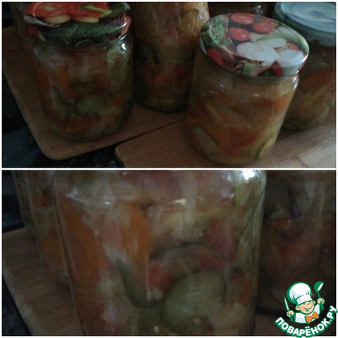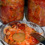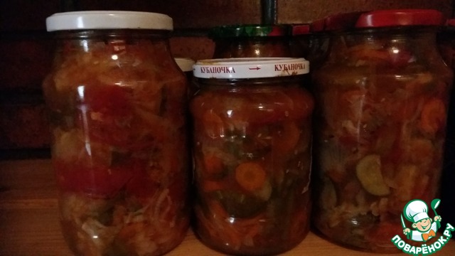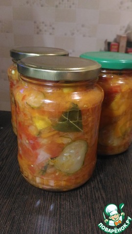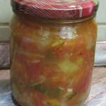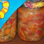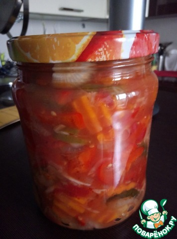 Этот вкусный овощной салат на зиму готовится без особых хлопот и хорошо хранится при комнатной температуре. Коллеги часто просят меня принести баночку на застолье, всегда съедается на ура!
