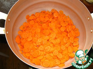 В большую кастрюлю (я обычно варю в мантоварке) положить слой нарезанной кружочками моркови.