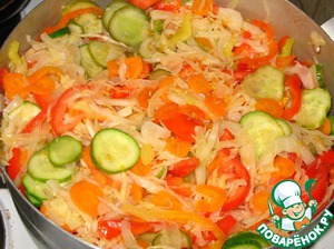 Нарезали, закинули, перемешали с солью и прочим. Быстрее выйдет соки ничего не пригорит.
