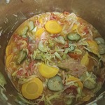 Кстати, у меня овощи не пригорают: я сначала грею кастрюлю с нарезкой на медленном огне, а по мере прогревания - прибавляю огня.
