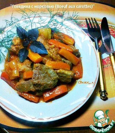 Boeuf aux carottes. Классическое блюдо французкой кухни с большим содержанием слегка кисловатой моркови и нежного мяса. Вкусно, сытно, просто и доступно. Предлагаю разнообразить свое повседневное меню!