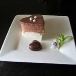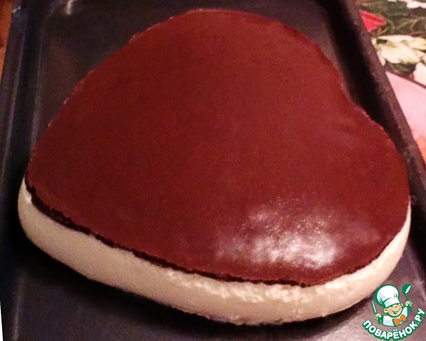 Вынуть из морозильника форму с застывшим шоколадным слоем, на него аккуратно, медленно вылить сливочную массу. Убрать форму в холодильник до полного застывания.