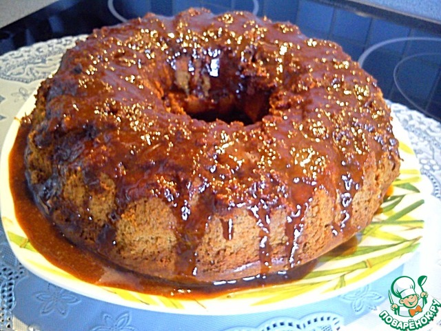Глазурь: я воспользовалась рецептом Алекс-Юстас "Зеркальная шоколадная глазурь для эклеров и тортов" http://www.povarenok .ru/recipes/show/753 59/ Прекрасный рецепт и прекрасный результат! На этот кекс я сделала полуторную норму глазури.