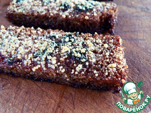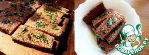 Хлеб обрезать от корок и разрезать на небольшие полоски. С одного куска у меня получилась по две полоски.