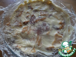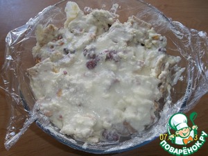Накрываем сверху пленкой и приминаем руками. Ставим в холодильник на ночь.