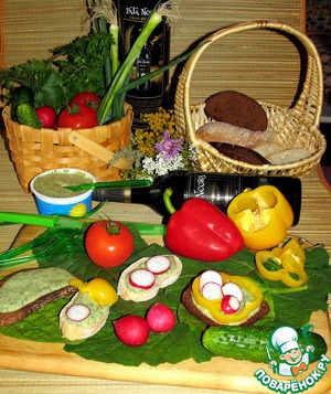 Очень вкусно намазать соус на чиабатту, а сверху положить овощи.