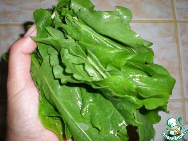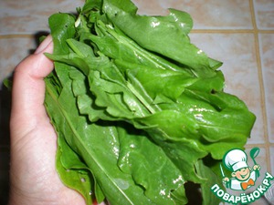 • Пока тесто подходит, подготовим начинку. Сыр натереть на терке. Щавель помыть. Зеленых листьев я взяла горсть. Слишком много брать не советую – это будет уже на любителя. Все-таки щавель, несмотря на тепловую обработку, дает свою кислоту выпечке.