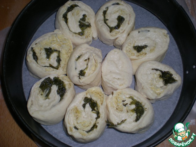 Рецепт «Булочки-улитки на сыворотке с сыром и щавелем»: