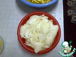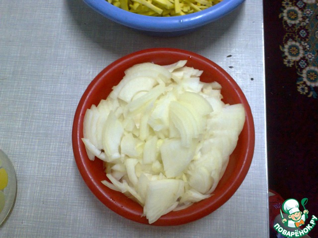 Лук очистить и нарезать полукольцами.