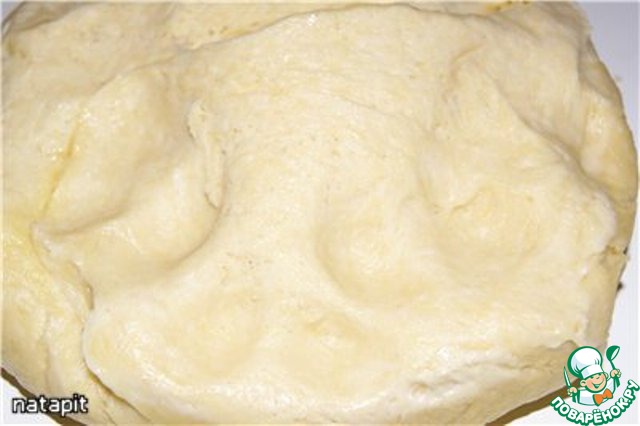 Подошедшее тесто (объём увеличивается в 2 раза) оставить немного нагреться при комнатной температуре.