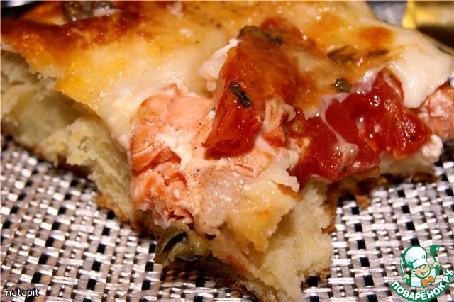 Я вот когда-нибудь попробую вместо помидор смазать тесто кетчупом,а на него уже положить лосось, может быть, еще вкуснее будет