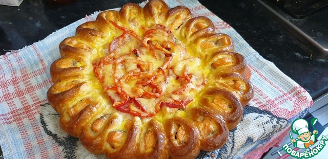 Запекать в прогретой до 180" С духовке 30 минут до золотисто-коричневой корочки. Через 20 минут после начала запекания смазать тесто желтком.