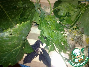 Итак, берем воду и растворяем в ней соль, пусть отстаивается. А мы пока в чистую 3-х литровую банку укладываем специи и огурцы. Я лаврушку и перчик оставила на второй день (базилик положила впервые).