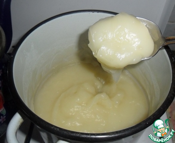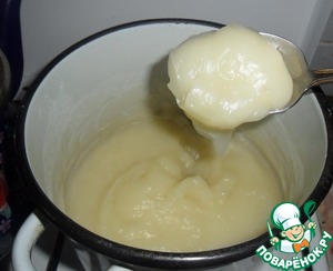 В 120 мл воды растворить крахмал, аккуратно тонкой струйкой влить в сладкую лимонную воду, поставить на огонь и тщательно помешивать, пока начинка не станет консистенцией, как пудинг.