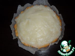 На горячий корж выложить начинку, разровнять. Дать начинке полностью остыть на корже.