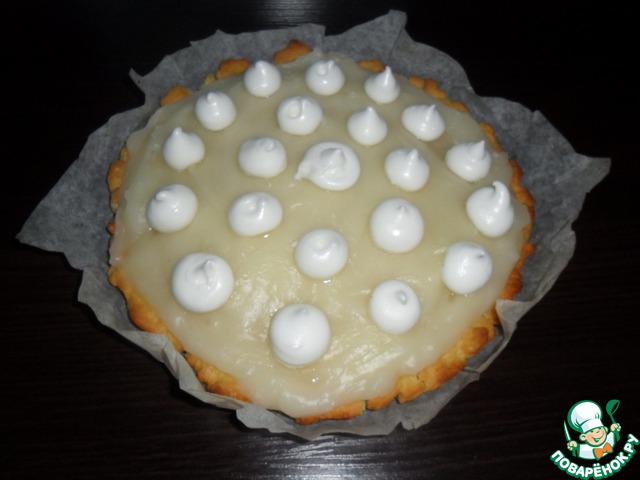 Поставить пирог, в разогретую до 200 градусов духовку на пару минут, чтобы безе подрумянилось. Разрезать пирог лучше мокрым ножом.