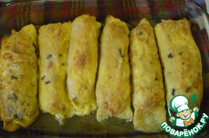Наливаем в форму немного воды и ставим в духовку на 25 мин. при t =200. Прикрываем верх подходящей крышкой. Затем открываем и держим еще 10 мин.